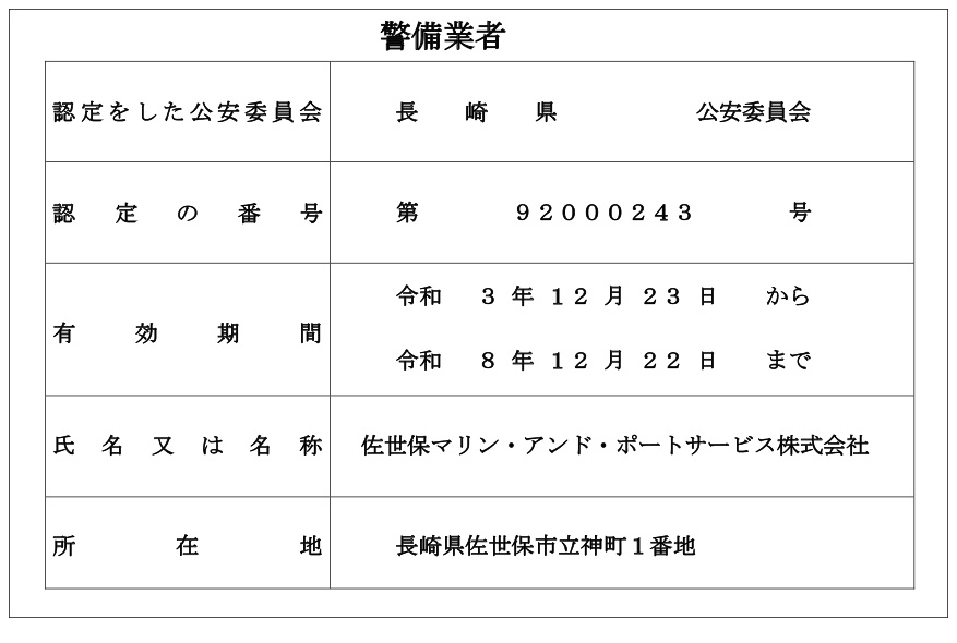 | 会社商号 | 佐世保マリン・アンド・ポートサービス株式会社 |